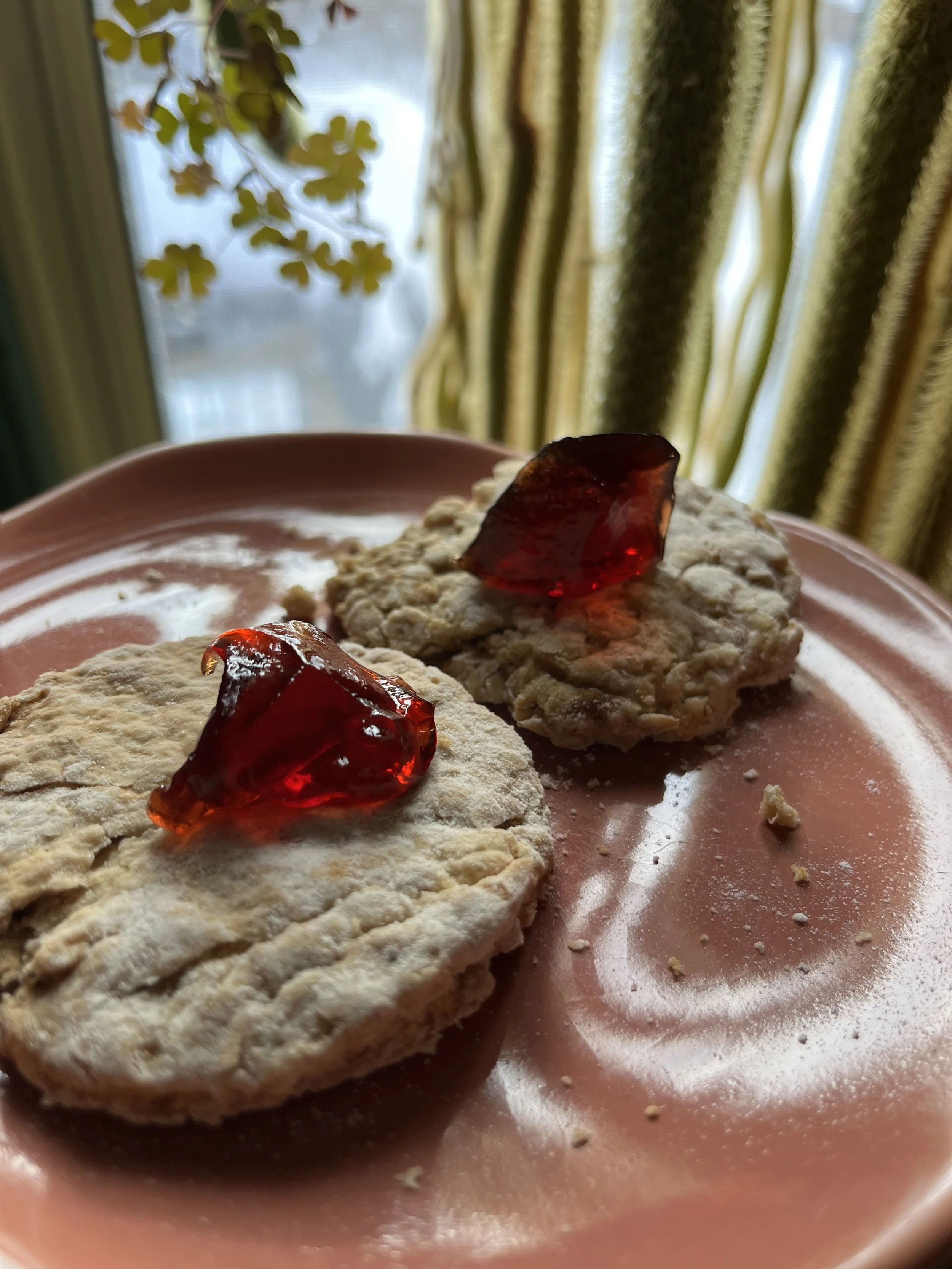 Tea is available for guests staying more than one night and consists of scones with home-made jams and jellies, and other desserts. The tea is sourced from the Tea Haus.